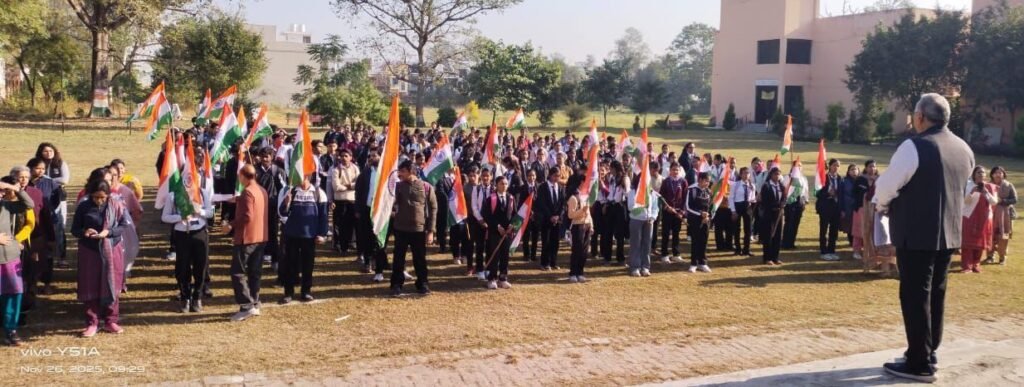 हरिद्वार। बुधवार को एसएमजेएन पीजी कॉलेज में आंतरिक गुणवत्ता आश्वासन प्रकोष्ठ के तत्वावधान और उच्च शिक्षा विभाग के निर्देशानुसार, ‘संविधान दिवस’ और राष्ट्रगीत ‘वंदे मातरम्’ की 150वीं वर्षगांठ के उपलक्ष्य में एक भव्य कार्यक्रम का आयोजन किया गया। कार्यक्रम का मुख्य आकर्षण ‘वंदे मातरम्’ का सामूहिक गायन रहा, जिसमें महाविद्यालय के विद्यार्थियों, प्राध्यापकों और शिक्षणेत्तर कर्मचारियों ने पूर्ण उत्साह के साथ भाग लिया।