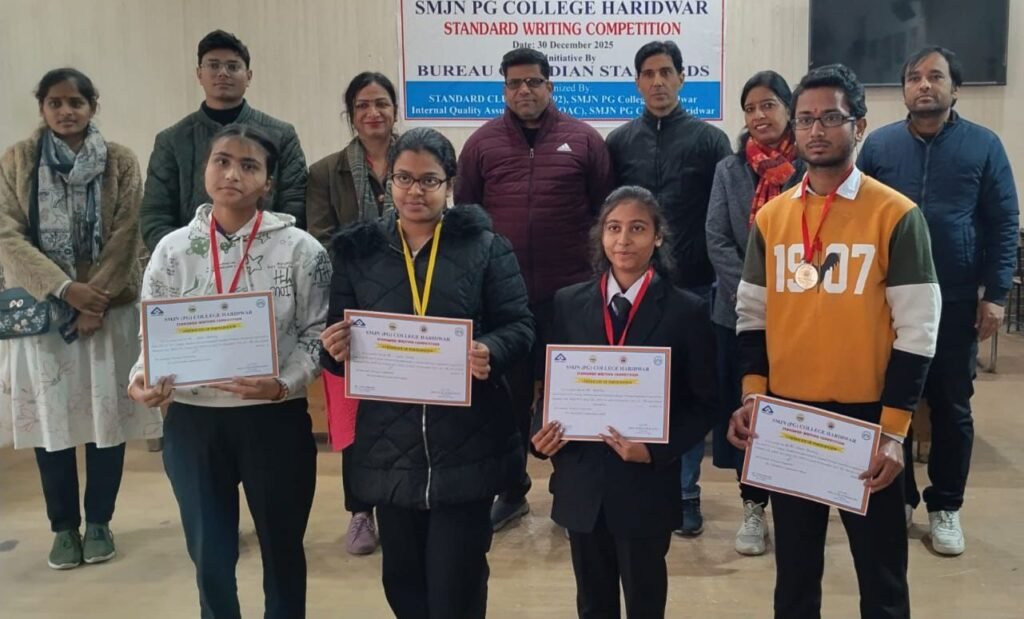 हरिद्वार। मंगलवार को एसएमजेएन पीजी कॉलेज में महाविद्यालय के मानक क्लब तथा आंतरिक गुणवत्ता आश्वासन प्रकोष्ठ के संयुक्त तत्वाधान में अभिविन्यास कार्यक्रम तथा मानक लेखन प्रतियोगिता का आयोजन किया गया। इस कार्यक्रम के दौरान मानक क्लब के मेंटर डॉ. विजय शर्मा ने विद्यार्थियों को मानकों और उनके महत्व पर विस्तार से जानकारी दी। उन्होंने विद्यार्थियों को बीआईएस केयर ऍप के बारे में भी समझाया तथा इसका उपयोग करने की सलाह दी ताकि उत्पाद की गुणवत्ता की जांच भी की जा सके। इस कार्यक्रम में डॉ. विजय शर्मा ने भारतीय मानक ब्यूरो की ओर से गुणवत्ता जागरूकता के लिए किये जा रहे हो प्रयासों और उपभोक्ताओं के अधिकारों के विषय में जानकारी देते हुए बताया कि जनमानस में गुणवत्ता की जागरूकता न केवल आर्थिक नुकसान को रोकती हैं बल्कि जीवन को घोर संकट की परिस्थिति से भी बचाती है। घरों में प्रयोग होने वाले गैस सिलेंडर पर भारतीय मानक ब्यूरो की ओर से गुणवत्ता प्रतीक इसी ओर इशारा करते हैं। इस दौरान मानक क्लब के विद्यार्थियों के लिए मानक लेखन प्रतियोगिता का आयोजन भी किया गया जिसमें पानी की बंद बोतल मानकों के विषय में विद्यार्थियों ने लेख लिखा। इस प्रतियोगिता में ज्योति सक्सेना को प्रथम, अंशु चौधरी को द्वितीय, रूद्र भारद्वाज को तृतीय जबकि वंशिका को सांत्वना पुरस्कार प्राप्त हुआ। कार्यक्रम में महाविद्यालय के प्राचार्य प्रो. सुनील कुमार बत्रा ने कहा कि युवाओं को मानकों के विषय में दी जा रही इस प्रकार की जानकारी समाज में बड़ा बदलाव लेकर आ रही हैं। उन्होंने कहा कि भारतीय मानक ब्यूरो द्वारा विद्यालयों तथा महाविद्यालयों में स्थापित किये गए मानक क्लब मानकों के प्रति चेतना बढ़ाने का अचूक प्रयोग साबित हो रहे हैं। कार्यक्रम में निर्णायक मंडल के रूप में पूर्णिमा सुंदरियाल, विनीत सक्सेना, यादविंदर सिंह, अंजलि शर्मा तथा गौरव अग्रवाल ने भूमिका निभाई और उन्होंने सभी विद्यार्थियों के प्रयासों की सराहना भी की। कार्यक्रम के अंत में कार्यक्रम के संयोजक डॉ विजय शर्मा ने बीआईएस देहरादून शाखा के निदेशक सौरभ तिवारी के प्रयासों के लिए धन्यवाद ज्ञापित करते हुए कहा कि मानकों के प्रति जागरूकता के लिए बोया गया अंकुर आज वृक्ष के रूप में फलीभूत हो रहा हैं। इस कार्यक्रम में विज्ञान संकाय से पुनीता शर्मा, पदमावती तनेजा, मनीषा पांडेय तथा कशिश, मयंक, माही, स्नेहा, नितिन शाह, हिमांशु आदि अनेक छात्र-छात्राएं उपस्थित रहें।