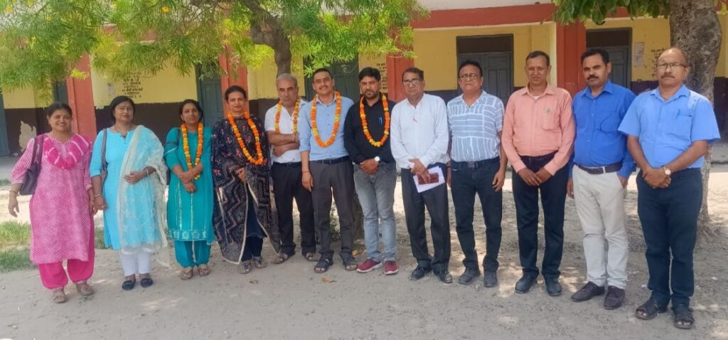 हरिद्वार। उत्तराखंड माध्यमिक शिक्षक संघ जनपद हरिद्वार की शाखा म्युनिसिपल इंटर कॉलेज, ज्वालापुर में हुए चुनाव में निर्विरोध रूप से श्रीमती अंजना अरोड़ा को अध्यक्ष एवं अखिलेश मैठाणी को मंत्री चुना गया। जैसा कि विदित ही है कि उत्तराखंड माध्यमिक शिक्षक संघ जनपद हरिद्वार के तहत सभी हाई स्कूल एवं इंटरमीडिएट कॉलेजों में शाखा के चुनाव संपन्न हो रहे हैं।इसी क्रम में आज म्युनिसिपल इंटर कॉलेज ज्वालापुर में शाखा के चुनाव संपन्न हुए। ज्वालापुर इंटर कॉलेज ज्वालापुर से आए चुनाव अधिकारी मनोज कुमार के निर्देशन में हुई बैठक में कॉलेज के प्रधानाचार्य सुनील कुमार कटारिया ने अध्यक्ष पद पर श्रीमती अंजना अरोड़ा, मंत्री पद पर अखिलेश मैठाणी, उपाध्यक्ष पद पर अश्वनी शर्मा उप मंत्री पद पर राजू सिंह एवं कोषाध्यक्ष पद पर श्रीमती कमलेश के नाम का प्रस्ताव रक्खा जिसका संघ के जिलाध्यक्ष राजेश सैनी सहित सभी उपस्थित सदस्यों ने समर्थन किया जिसके बाद चुनाव अधिकारी ने उपरोक्त सभी के निर्विरोध निर्वाचित होने की घोषणा की। इसके बाद विद्यालय के प्रधानाचार्य सुनील कुमार कटारिया, संघ के जिला अध्यक्ष राजेश सैनी, निवर्तमान शाखा मंत्री दीपक नौटियाल, निवर्तमान शाखा उपाध्यक्ष अलका अग्रवाल, डॉ. द्विजेन्द्र बल्लभ शर्मा, डॉ. मुक्ता कौशिक, समय सिंह, पंकज शर्मा, सुमित सारस्वत सहित सभी साथियों ने उपरोक्त सभी पदाधिकारियों का माल्यार्पण कर स्वागत कर बधाई एवं शुभकामनाएं दी। बैठक का संचालन दीपक नौटियाल ने किया।