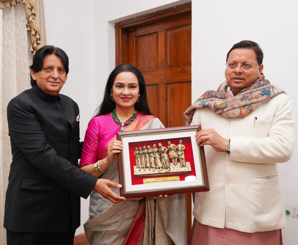 उत्तराखण्ड / देहरादून। मुख्यमंत्री पुष्कर सिंह धामी से रविवार को मुख्यमंत्री आवास में बॉलीवुड की अभिनेत्री श्रीमती पद्मिनी कोल्हापुरे ने शिष्टाचार भेंट की।