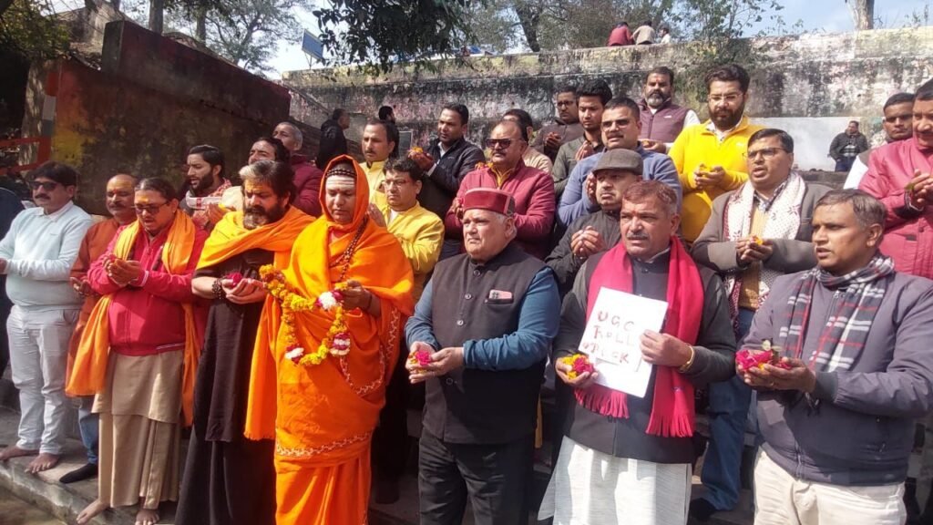 हरिद्वार। यूजीसी के नए नियमों पर सुप्रीम कोर्ट के रोक लगाने के फैसला का स्वागत करते हुए श्री अखंड परशुराम अखाड़े के अध्यक्ष पंडित अधीर कौशिक के संयोजन में ब्राह्मण समाज के लोगों ने मालवीय घाट पर मां गंगा की पूजा-अर्चना और दुग्धाभिषेक कर आभार जताया और सरकार की बुद्धि शुद्धि की कामना की। इस दौरान श्री अखंड परशुराम अखाड़े के अध्यक्ष पंडित अधीर कौशिक, निरंजनी अखाड़े के महामंडलेश्वर स्वामी वेदमूर्ति गिरी समेत ब्राह्मण समाज के कई लोग मौजूद रहे। सभी ने सुप्रीम कोर्ट के फैसले की सराहना करते हुए यूजीसी को काला कानून बताया और इसे लागू करने वाली कमेटी के सदस्यों के पिंडदान की चेतावनी दी और खून से पत्र लिखकर राष्ट्रपति से यूजीसी के नए नियमों पर प्रतिबंध लगाने की मांग की। निरंजनी अखाड़े के महामंडलेश्वर स्वामी वेदमूर्ति गिरी ने कहा कि यूजीसी के विरोध में सवर्ण समाज के नेताओं का एक भी बयान न आना निंदनीय है। सरकार ने तो इस पर कोई प्रतिक्रिया ही नहीं दी। लेकिन सुप्रीम कोर्ट ने इसका संज्ञान लिया और काले कानून पर रोक लगा दी। उन्होंने कहा कि देश में जिस समय सभी समाज एकजुट हो रहे हैं, उस समय ऐसा कानून लाकर लोगों को बांटने का कार्य किया जा रहा है। जिसे बिल्कुल स्वीकार नहीं किया जाएगा। यदि भविष्य में ऐसा कानून लाया गया, तो स्वर्ण समाज के लोग इसे बिल्कुल भी बर्दाश्त नहीं करेंगे। श्री अखंड परशुराम अखाड़े के अध्यक्ष पंडित अधीर कौशिक ने कहा कि यूजीसी के खिलाफ पूरे भारत में विरोध में आवाज उठी। लेकिन सरकार के कानों पर जूं तक नहीं रेंगी। सुप्रीम कोर्ट ने जो फैसला लिया है, वह स्वागत योग्य है। पंडित अधीर कौशिक ने कहा कि जो काला कानून जबरदस्ती सवर्ण समाज के लोगों पर थोपा जा रहा है। उसे पूर्णतया समाप्त किया जाए। उन्होंने चेतावनी देते हुए कहा कि यदि ऐसा नहीं होता है तो आने वाले समय में उग्र विरोध किया जाएगा। कोर्ट ने तो इस पर रोक लगा दी है, उस फैसले का स्वागत है। लेकिन जब तक सरकार इसे खुद वापस नहीं लेती, तब तक विरोध का सिलसिला चलता रहेगा। कथावाचक पवन कृष्ण शास्त्री ने कहा कि यूजीसी को लाकर सरकार ने स्वर्ण समाज पर जो कुठाराघात किया है, उसे बिल्कुल भी स्वीकार नहीं किया जाएगा। अभी सांकेतिक विरोध किया जा रहा है। यदि आगे इस कानून को लागू किया गया तो स्वर्ण समाज चुप नहीं बैठेगा। अपने बच्चों के भविष्य को इस काले कानून का शिकार नहीं होने देंगे। उन्होंने कहा कि सरकार ब्राह्मण समाज ही नहीं बल्कि अन्य समाज पर भी नए-नए कानून थोपने का कार्य कर रही है। यदि यह काला कानून फिर से थोपा गया तो ब्राह्मण समाज हरिद्वार में यूजीसी कमेटी के सदस्यों का पिंडदान करेगा। इस दौरान पंडित प्रवीण गौतम, वेद पुत्र महाराज, पंडित पवन कृष्ण 