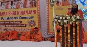 हरिद्वार। जापान के संत आदित्यानंद पुरी को श्री पंचायती अखाड़ा निरंजनी के महामंडलेश्वर की पदवी प्रदान की गयी। अखिल भारतीय अखाड़ा परिषद एवं मनसा देवी मंदिर ट्रस्ट के अध्यक्ष श्रीमहंत रविंद्रपुरी महाराज के संयोजन में एसएमजेएन कालेज के प्रांगण में आयोजित भव्य पट्टाभिषेक समारोह में संत समाज ने वैदिक परंपरा अनुसार चादर विधि और पुष्प वर्षा कर स्वामी आदित्यानंद पुरी का अखाड़े के महामंडलेश्वर पद पर अभिषेक किया।