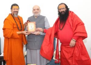 नई दिल्ली / हरिद्वार। अखिल भारतीय अखाड़ा परिषद के अध्यक्ष और निरंजनी अखाड़े के सचिव श्रीमहंत रविंद्रपुरी महाराज एवं निरंजन पीठाधीश्वर आचार्य महामंडलेश्वर स्वामी कैलाशानंद गिरि महाराज ने गृहमंत्री अमित शाह से मुलाकात कर सनातन धर्म संस्कृति को संरक्षित संवर्धित करने की बधाई दी।