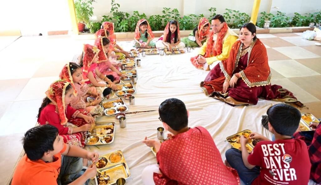 उत्तराखण्ड / देहरादून। रामनवमी के शुभ अवसर पर मुख्यमंत्री पुष्कर सिंह धामी ने मुख्यमंत्री आवास में कन्या पूजन कर देवी स्वरूपा बालिकाओं का सम्मान किया। इस दौरान उन्होंने पारंपरिक रीति-रिवाजों के अनुसार कन्याओं को भोजन कराया तथा उनका आशीर्वाद प्राप्त किया।