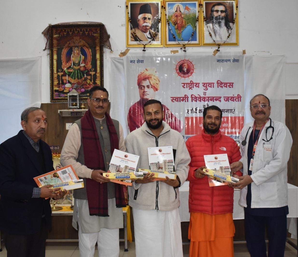 हरिद्वार। स्वामी विवेकानंद हेल्थ मिशन सोसाइटी द्वारा संचालित स्वामी राम प्रकाश चैरिटेबल हॉस्पिटल हरिद्वार में स्वामी विवेकानंद जयंती धूमधाम से मनाई गई। कार्यक्रम का शुभारंभ मुख्य अतिथि एवं विशिष्ट अतिथियों द्वारा दीप प्रज्वलन एवं स्वामी विवेकानंद की प्रतिमा पर माल्यार्पण कर किया गया। कार्यक्रम के मुख्य अतिथि राष्ट्रीय स्वयंसेवक संघ के विभाग प्रचारक चिरंजीवी, विशिष्ट गरीब दासी आश्रम हरिद्वार के महंत स्वामी रवि देव शास्त्री, चेतन ज्योति आश्रम के महंत स्वामी शिवम, क्रिकेट के राष्ट्रीय खिलाड़ी प्रकाश जोशी तथा समाजसेवी पवन आहूजा रहे। कार्यक्रम की अध्यक्षता स्वामी रामप्रकाश चैरिटेबल हॉस्पिटल हरिद्वार के निदेशक एवं सुप्रसिद्ध चिकित्सक डॉ. संजय शाह ने की। कार्यक्रम का संचालन ध्वजपाल सिंह रावत द्वारा किया गया। कार्यक्रम में भाषण एवं गीत प्रतियोगिता रखी गई जिसमें चिकित्सकों एवं स्टाफ ने बढ़ चढ़कर भाग लिया। कार्यक्रम में मुख्य अतिथि एवं विशिष्ट अतिथियों ने अपने विचार रखें। अतिथियों द्वारा सभी को स्वामी विवेकानंद जयंती एवं युवा दिवस की शुभकामनाएं दी गई। कार्यक्रम में मुख्य अतिथि एवं विशिष्ट अतिथियों को अस्पताल के निदेशक डॉ. संजय शाह द्वारा स्वामी विवेकानंद हेल्थ मिशन सोसाइटी का वार्षिक कैलेंडर एवं वार्षिक वृतांत भेंट किया गया। अपने संबोधन में डॉ. संजय शाह ने कहा कि स्वामी विवेकानंद के विचार हर युग में प्रासंगिक हैं। वे महामानव थे। विशिष्ट अतिथि पवन आहूजा द्वारा स्वामी विवेकानंद की मूर्ति एवं गणेश जी की मूर्ति पर रुद्राक्ष की माला एवं स्फटिक की माला अर्पित की गई। कार्यक्रम के अंत में कार्यक्रम के अध्यक्ष डॉ. संजय शाह द्वारा सभी का धन्यवाद किया गया एवं कार्यक्रम का समापन किया गया । स्वामी विवेकानंद जयंती के अवसर पर सुबह मैराथन दौड़ की प्रतियोगिता भी आयोजित गई। जिसमें समस्त स्टाफ एवं डॉक्टर ने भाग लिया। इस अवसर पर समाजसेवी योगेश पांडे, डॉक्टर तीस्ता शाह, डॉक्टर अशोक शर्मा, डॉक्टर पवन धामा, निधि धीमान एवं समस्त डॉक्टर एवं स्टाफ उपस्थित रहे।