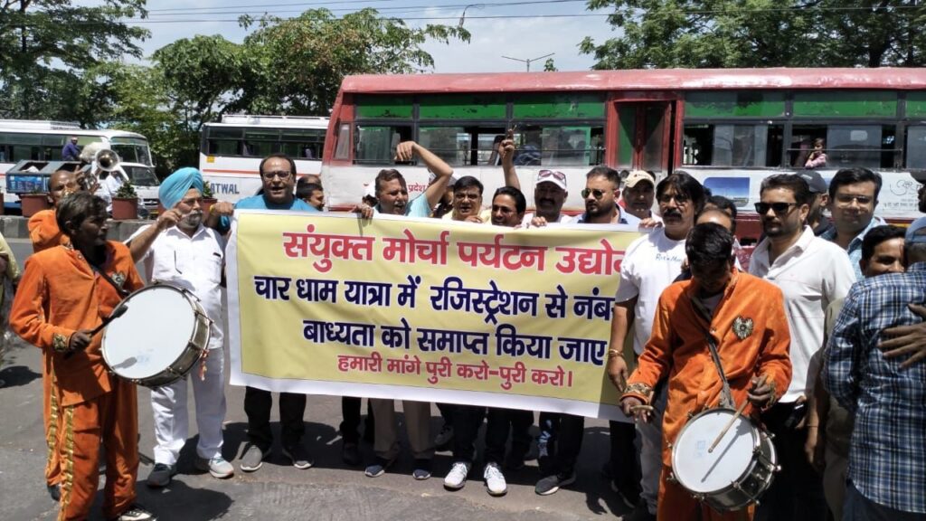 हरिद्वार। चारधाम यात्रा पर आने वाले श्रद्धालुओं की संख्या में निर्धारित करने के विरोध में टूर ऑपरेटर एसोसिएशन के बैनर पर पर्यटन व्यवसायिों ने बैण्ड बाजों के साथ पर्यटन कार्यालय पर प्रदर्शन किया और जिला पर्यटन अधिकारी के माध्यम से मुख्यमंत्री व पर्यटन मंत्री को ज्ञापन भेजा। पर्यटन व्यवसायियों ने चारधाम यात्रियों की संख्या सीमित किए जाने के विरोध में नारेबाजी करते हुए इस नियम को समाप्त करने की मांग की। विरोध प्रदर्शन में टूर ऑपरेटर एसोसिएशन, टैक्सी-मैक्सी ट्रांसपोर्ट एसोसिएशन, हरिद्वार टैक्सी ड्राइवर एंड ऑनर्स एसोसिएशन और हरिद्वार ट्रेवल एसोसिएशन के पदाधिकारी व सदस्य शामिल रहे। पर्यटन व्यवसायियों का कहना है कि यात्रियों की संख्या सीमित किए जाने से उन्हें कारोबार में नुकसान उठाना पड़ेगा। लाखों की संख्या में श्रद्धालु चारधाम यात्रा वंचित रह जाएंगे।