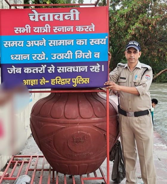 हरिद्वार / ज्वालापुर। आएं दिन गंगा स्नान के दौरान होने वाली घटनाओं पर रोक लगाने हेतु वरिष्ठ पुलिस अधीक्षक जनपद हरिद्वार के आदेशानुसार ज्वालापुर पुलिस द्वारा विभिन्न घाटों खन्ना नगर घाट/प्रेम नगर आश्रम घाट/गोविंदपुरी घाट/चौधरी चरण सिंह घाट पर चेतावनी बोर्ड लगाए गए। जिसमें स्नान करते समय महिलाओं/बच्चों की वीडियो रील/फोटो खींचना/बनाना कानूनी अपराध है। साथ ही स्नान करते समय अपने सामान का ध्यान स्वयं रखें जेब कतरों/उठाईघरों से सावधान रहने संबंधी सूचना की चेतावनी बोर्ड लगाए गए।