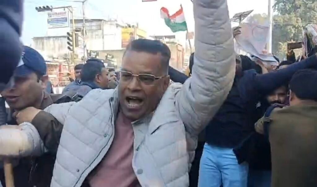 हरिद्वार। उत्तराखंड की बेटी अंकिता भंडारी हत्याकांड की सुप्रीम कोर्ट के जज की निगरानी में निष्पक्ष सीबीआई जांच की मांग और दोषी भाजपा के वीआईपी नेताओं के खिलाफ कड़ी कार्यवाही, प्रदेश में बिगड़ती कानून व्यवस्था, उत्तर प्रदेश के प्रयागराज में मौनी अमावस्या के स्नान पर्व पर हिन्दुओं के राजा शंकराचार्य स्वामी अविमुक्तेश्वरानंद महाराज और उनके शिष्यों के साथ हुई अभद्रता, मुनि महाराज की डोली और उनके भक्तों के खिलाफ पुलिस और प्रशासन द्वारा की गई अभद्रता और मुकदमों, उधम सिंह नगर में किसान सुखवंत सिंह द्वारा की गई आत्महत्या की सीबीआई जांच और धामी सरकार के संरक्षण फल फूल रहे भ्रष्टाचार को लेकर वरिष्ठ कांग्रेस नेता मनोज सैनी व सोम त्यागी के संयोजन और यूथ कांग्रेस अध्यक्ष गौरव चौहान के नेतृत्व में युवा कांग्रेस पदाधिकारियों और कार्यकर्ताओं ने ऋषिकुल तिराहे पर अमित शाह मुर्दाबाद, अमित शाह गो-बैक, हिन्दू विरोधी ये सरकार नहीं चलेगी आदि नारों के साथ जोरदार प्रदर्शन किया तथा गृह मंत्री अमित शाह को काले झंडे दिखाने के लिए हाइवे की तरफ बढ़े तो भारी पुलिस बल ने उन्हें रास्ते पर ही रोकने का प्रयास किया, जिसमें पुलिस और कांग्रेस कार्यकर्ताओं के के बीच धक्का-मुक्की हुई और पुलिस ने बीच रास्ते में सभी को गिरफ्तार कर पुलिस लाइन भेज दिया।