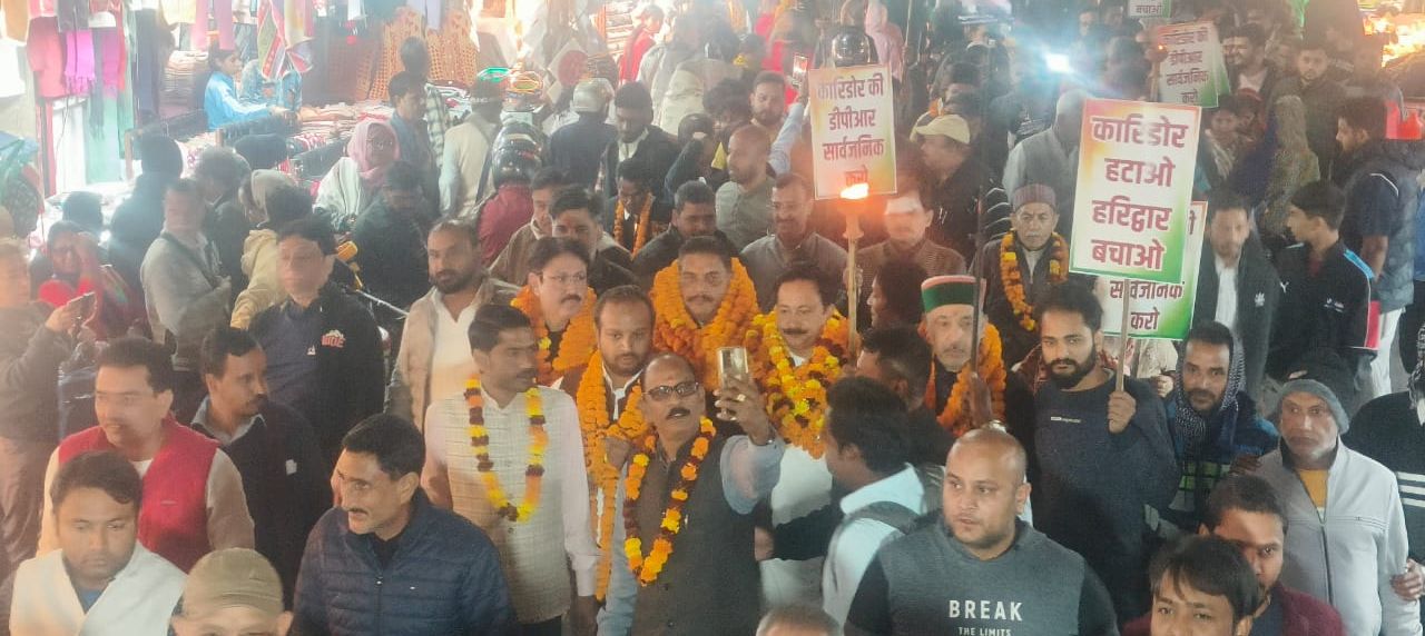 हरिद्वार। रविवार को जिला महानगर कांग्रेस कमेटी हरिद्वार, शहर व्यापार मंडल व विभिन्न संगठनों द्वारा संयुक्त रूप से कॉरिडोर हटाओ हरिद्वार बचाओ व डीपीआर सार्वजनिक करने को लेकर मशाल यात्रा का आयोजन शिवमूर्ति रेलवे स्टेशन से हरकी पैड़ी तक किया गया, जिसमें व्यापारियों, स्थानीय नागरिकों ने बढ़-चढ़ कर हिस्सा लिया और प्रशासन को आर-पार की लड़ाई के लिए चेताया।